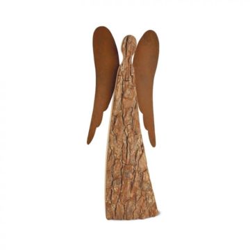 Laub- und Nadelholz mit Rinde (natur) und rostig-veredelter Stahl