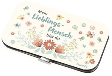 Schönes Maniküre-Set aus Kunstleder, hochwertig verarbeitet, mit Maniküre-Utensilien. Die Designs erstrahlen in brillantem vierfarbigen Druck, während die Oberfläche mit einer Strukturprägung für einen authentischen Leder-Look sorgt.