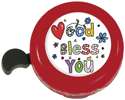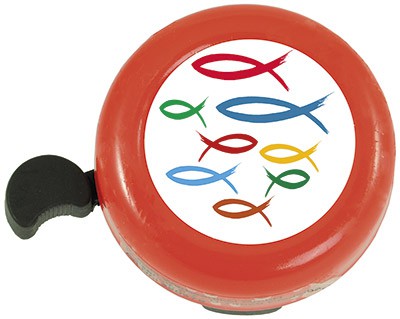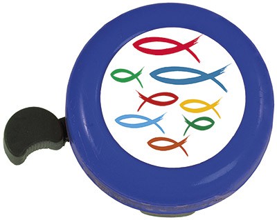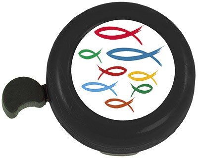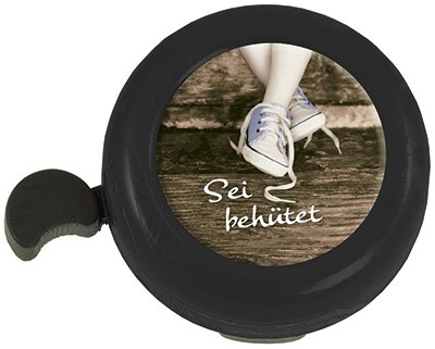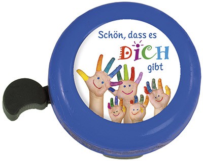 Fahrrad-Klingel mit fröhlichen und ermutigenden Motiven.