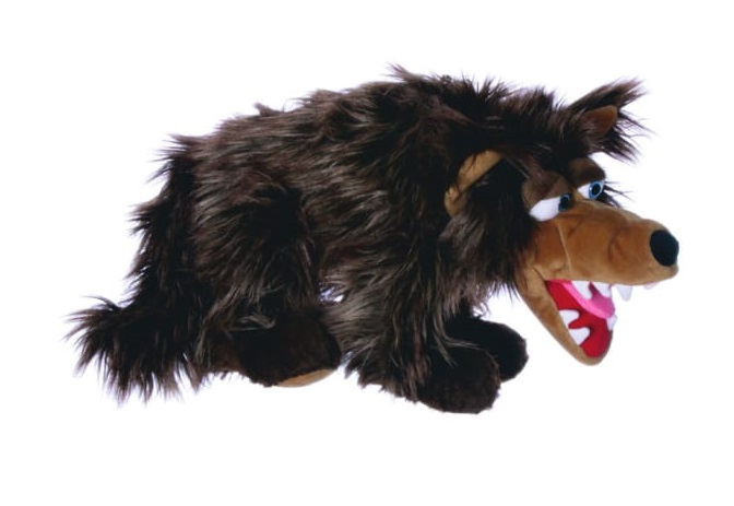Mit großen Zähnen. Maul bespielbar, Handeingang am Bauch. Größe 50 cm