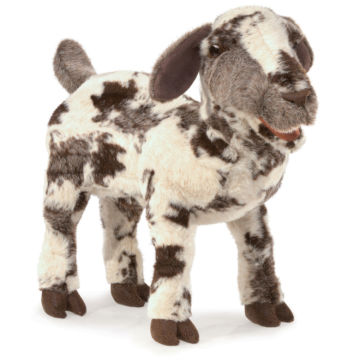 Das Design der Folkmanis Ziege, schreiend, Handpuppe wurde von Internet Videos inspiriert. Der Spaß entsteht, wenn das Maul gespielt wird, während man auf den Bauch drückt und der „Schrei“ ertönt.