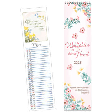Der farbenfrohe Streifen-Terminer überzeugt durch feine, florale Aquarellmotive und berührende Bibelimpulse, die Ihnen jeden Monat aufs Neue Gottes Liebe und Zuwendung vor Augen führen.
