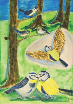 In acht Bildern wird die Geschichte von Tico mit den goldenen Flügeln erzählt (gekürzte Version von Leo Lionni). Der zunächst flügellose Vogel – gut versorgt von seinen Geschwistern – erhält vom Wunschvogel goldene Flügel. Damit wird er ausgestoßen. Er schenkt Notleidenden nach und nach seine goldenen Federn und schwarze wachsen nach. Somit ist er wieder in die Gemeinschaft der anderen aufgenommen.