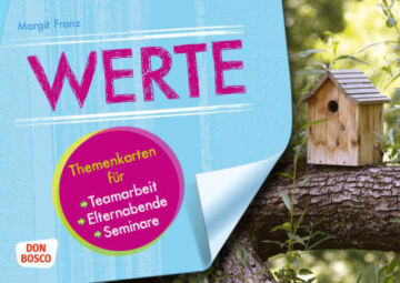 Welche Werte brauchen Kinder? Wie vermittelt man Werte am besten? Wie drücken sich diese Werte im Alltag aus? Mit diesen neuen Bildkarten für Teamarbeit, Elternabende und Seminare erhalten Kita-LeiterInnen oder ReferentInnen in der ErzieherInnenfortbildung ein vielseitiges und kreatives Arbeitsmaterial an die Hand, mit dem sich das Thema „Werte“ in der Gruppe reflektieren, diskutieren und ins Bewusstsein rufen lässt. Das Themenset besteht aus 30 stabilen DIN-A4-Karten. Die Kartenvorderseiten zeigen jeweils ein starkes Symbol-Foto, die Rückseiten zitieren einen inspirierenden Text zum jeweiligen Bild und stellen Impulsfragen zum Thema. Die Karten können als Einstieg im Raum verteilt werden, sodass sich jede Teilnehmerin und jeder Teilnehmer den Aspekt auswählen kann, der ihr bzw. ihm zentral erscheint. In der Gesprächsrunde stellen die TeilnehmerInnen nacheinander ihre Gedanken vor und präsentieren die Karte dabei.